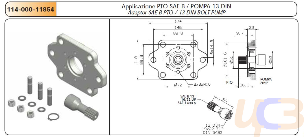 Данный переходник-адаптер служит для соединения КОМ SAE B и насоса 13DIN.